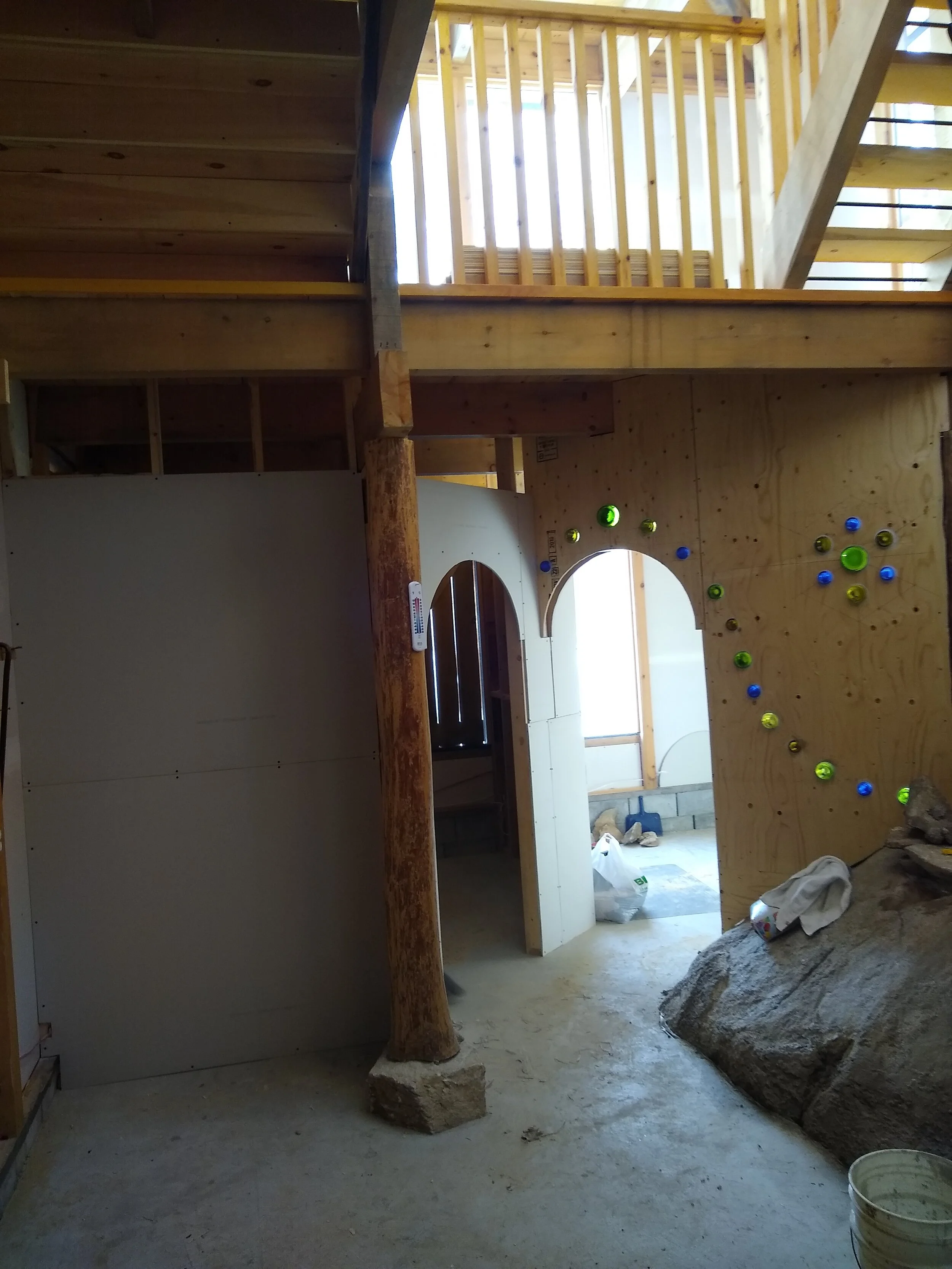 These last few weeks I have been in one place more stably than I have been for the past several months. We have been working on the house, finishing it to sell. The sale will fund the construction of the next house; this time one that we can properly call home. Amidst the chaos of living on a construction site, there emerges a calm rhythm from the persistent necessity of work. We awake, make coffee, assess what needs to be done, make a trip to the hardware store if necessary. We begin; framing walls, scrubbing down the exposed bedrock left as a reminder of what lay here before, laying tile around it. We consult, shifting plans slightly as new considerations arise. How much detail and work to put in? How to inlay the glass bottles in the wall so as to frame the doorway, bringing a splash of colour to the wooden framing of the house. Some days the progress is not very visible, but its mark is there in our bandaged hands, in the floor plans for new rooms etched out on concrete.